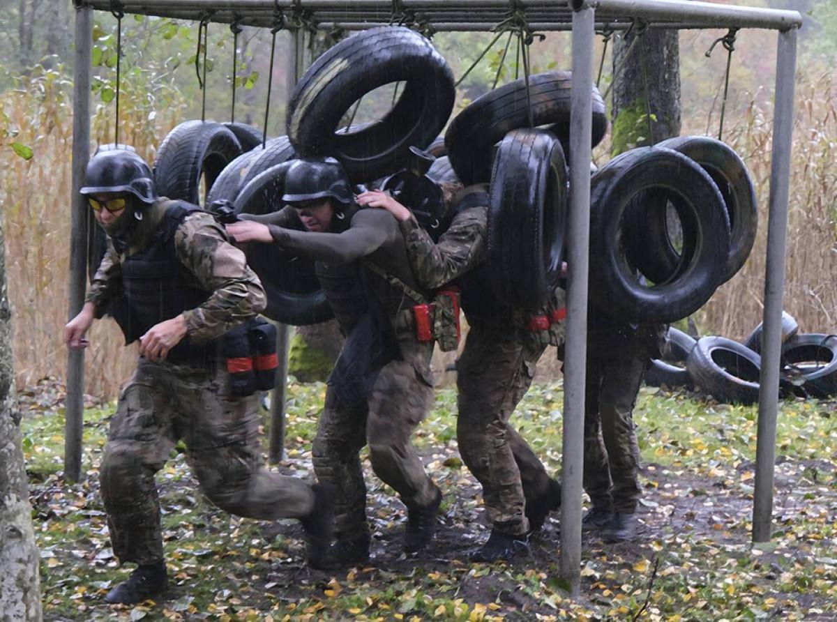 Тактическая полоса препятствий стала вторым этапом испытаний: команды бежали по пересечённой местности, собирали и разбирали оружие, толкали в гору автомобиль, покоряли скалодром, выполняли силовые упражнения, переправлялись на лодке через озеро, задерживали условных преступников, пытавшихся скрыться на автомобиле, штурмовали здание, эвакуировали раненого бойца.