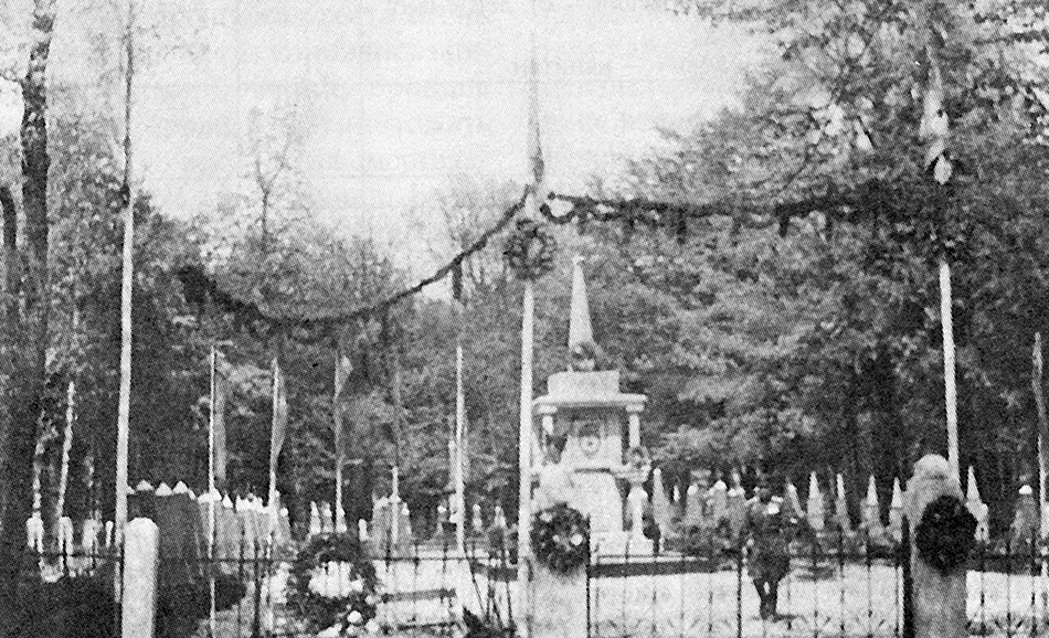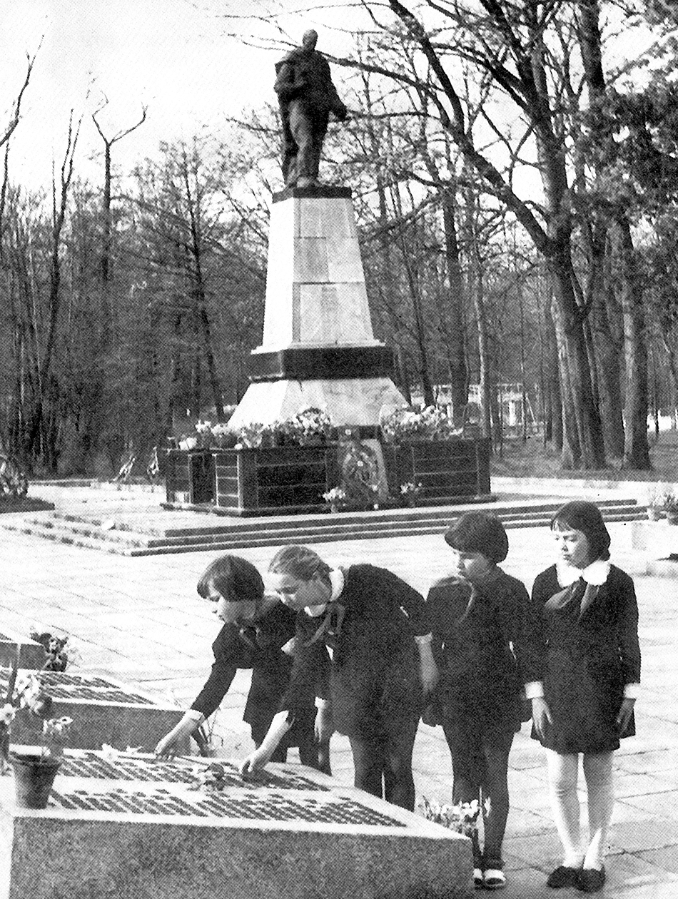 Погибших товарищей хоронили на окраине города в живописном парке и у сквера на пересечении улиц Московской и Пограничной. В парке был установлен обелиск со шпилем, а в сквере – скульптура женщины с лавровым венком в руках.