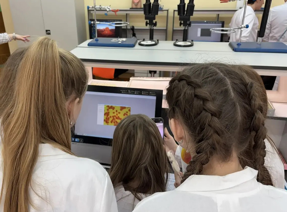 «Мы с ребятами определяли типы тканей, их местоположение и вносили эти данные в таблицу. Учащиеся некоторых школ видели такое оборудование впервые, им было сложнее, но мы справились сообща. Мы вместе провели гистологические тесты: рассматривали эпителий почечных канальцев человека, каплю крови лягушки и паренхиму – покровную ткань растений, отвечающую за фотосинтез и накопление питательных веществ. Мои ровесники не могли оторваться от вида поперечного среза спинного мозга, представленного на стёклышке, и безошибочно определили, что он относится к нервной ткани. Ребята выходили из лаборатории окрылёнными, с уверенностью, что увиденное своими глазами в этот день поможет на экзаменах», – отметила ученица Зеленоградской средней школы Полина Замареева, которая помогала педагогам в клеточной лаборатории.