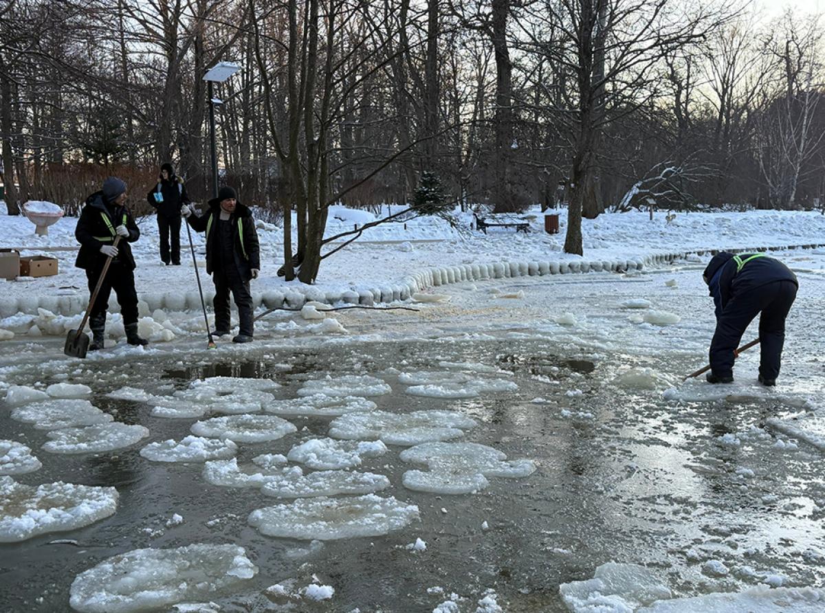 В городском парке сотрудники МАУ «Благоустройство» спасали замёрзших уток.