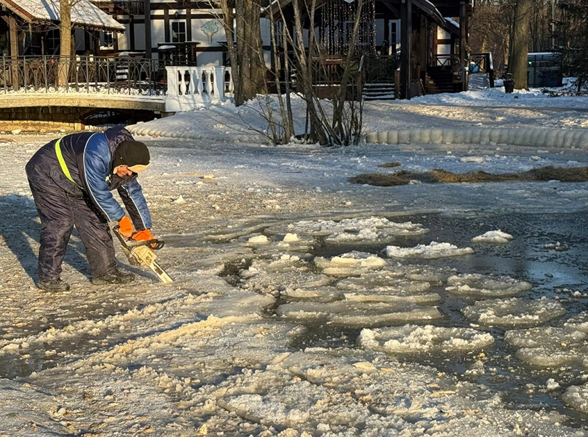 После консультаций со специалистами АНО «Биосфера Балтики» было принято решение расчистить полынью. 2 февраля рабочие МАУ «Благоустройство» на месте оценили ситуацию и принялись очищать от льдин и шуги полынью, чтобы дать уткам возможность выйти к открытой воде. В ход пошли пила, ломы и даже сачки. Полынью частично удалось расчистить.