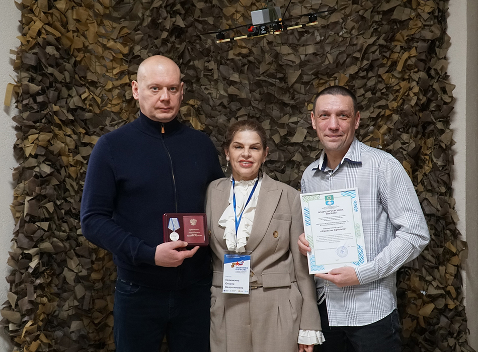 Временно исполняющий обязанности председателя окружного Совета депутатов, участник спецоперации и ветеран боевых действий Максим Хапочкин наградил представителей волонтёрских групп, которые помогают нашим военным и приближают победу: это «Блиндажные свечи» (Наталья Васильевна Степанченко), «Супы для СВОих_39» (Елена Александровна Ярошенко), «Русская артель. Калининград» (Дмитрий Валерьевич Комиссаров), «Своих не бросаем» (Сергей Леонидович Ленюк).
