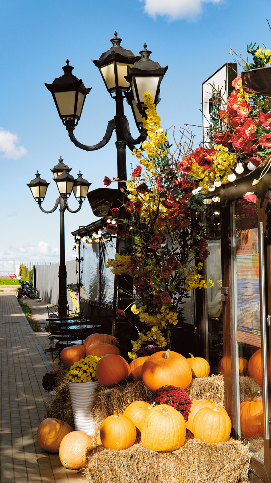 Магазины и кафе в Зеленоградске решили не отставать от яркого сезона, украсив входные группы своих заведений в осенний декор