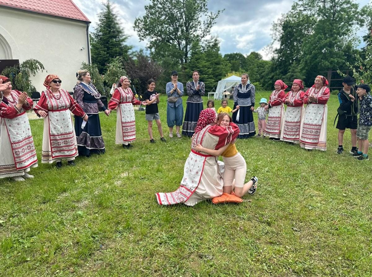 Ведущая, перевоплотившись в гостеприимную хозяюшку, рассказала об истории и значении Святой Троицы, а также о связанных с ней обычаях и обрядах. Народные песни создавали атмосферу единения и радости, а игра на гармони добавляет особый уют и теплоту празднику. Все вместе водили хороводы, играли в русские старинные игры: «Ручеёк», «Золотые ворота» и другие.