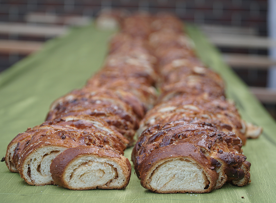 Кульминация праздника – театрализованная подача главного блюда дня: пирог торжественно доставили по импровизированному живому коридору. Повара и поварята представили многочисленным зрителям огромный Кранцевский пирог со сладкой начинкой, украшенный фирменным плетением. Форма выпечки связана с довоенным названием Зеленоградска, созвучным с немецким словом, означающим в переводе «венок».