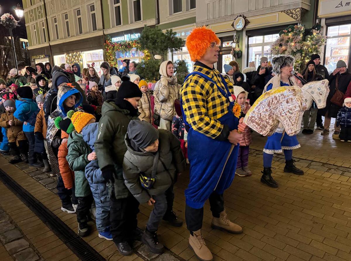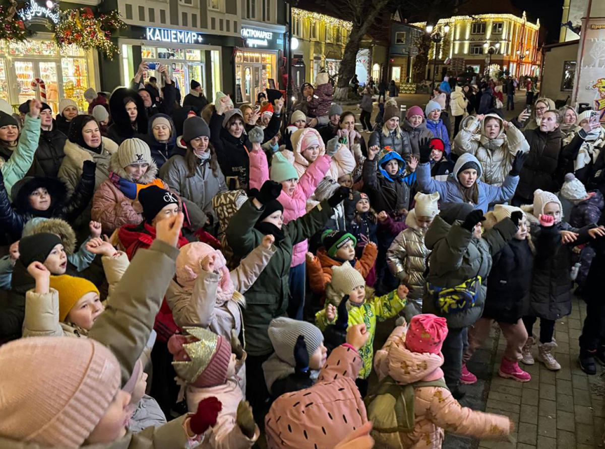 Детей ждали весёлые конкурсы, зажигательные танцы и перевоплощения: малыши участвовали в скачках на волшебных конях, примеряли на себя оживающую шляпу, помощники Деда Мороза искали спрятанные в капюшонах детворы яблоки. А яркий танцевальный флешмоб от ансамбля «Янтарные узоры» вслед за детьми подхватили даже взрослые! Каждый ребёнок получил от Деда Мороза сладкое угощение, а ребята, пришедшие в этот день в карнавальных костюмах, были удостоены специального приза.