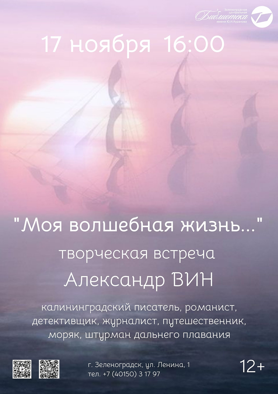 Встреча пройдет 17 ноября, начало в 16 часов (12+). Вход свободный.