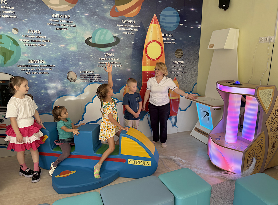 Кроме робототехники, ребята из подготовительной группы Елены Ведерниковой с удовольствием осваивают науку о космосе в игровых центрах детского сада: в музыкальном зале они безошибочно называют виртуальные планеты, а в уличном павильоне перевоплощаются в настоящих космонавтов. Педагог основала для ребят такую традицию: когда она берёт новую группу воспитанников, совсем ещё маленьких, вместе с ними в мультстудии детского сада готовит мультфильм о космических приключениях, героями в котором становятся сами дети – их лица и голоса. Когда мультфильм выходит «на широкий экран», то есть транслируется родителям, маленькие звёздочки и их семьи запоминают это событие как одно из самых ярких.