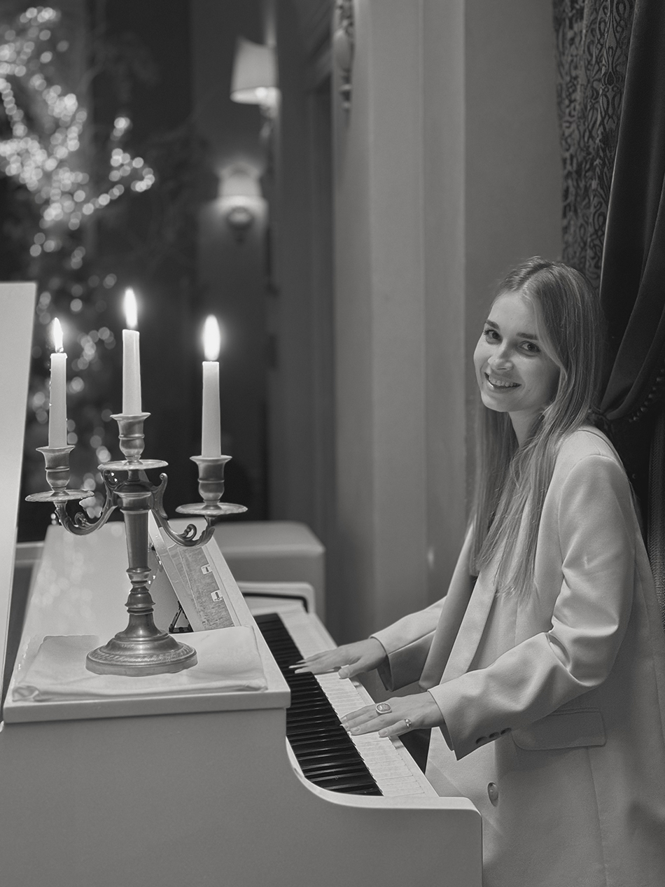 Она вокалист и виртуозно владеет не только фортепиано, но и скрипкой, ведёт профессиональную и концертную деятельность, выступает на самых известных площадках столицы: Зарядье, Московский международный дом музыки, Большой театр и других, её концертные номера не раз транслировались по российскому телевидению.