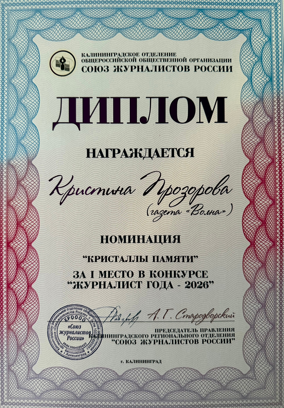 Названы победители журналистского конкурса «Летопись поколений», посвящённого 80-летию Калининградской области.