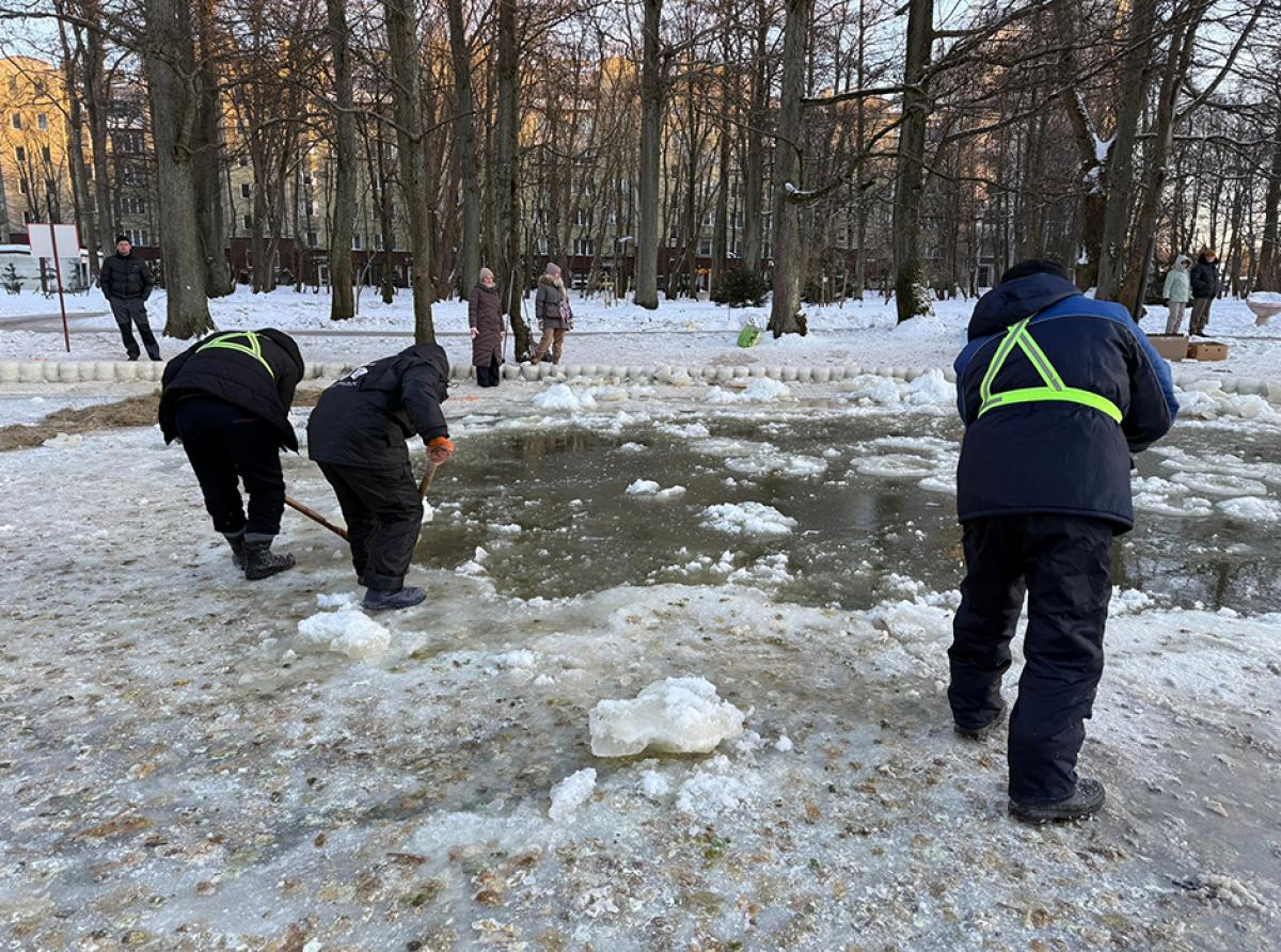 После консультаций со специалистами АНО «Биосфера Балтики» было принято решение расчистить полынью. 2 февраля рабочие МАУ «Благоустройство» на месте оценили ситуацию и принялись очищать от льдин и шуги полынью, чтобы дать уткам возможность выйти к открытой воде. В ход пошли пила, ломы и даже сачки. Полынью частично удалось расчистить.