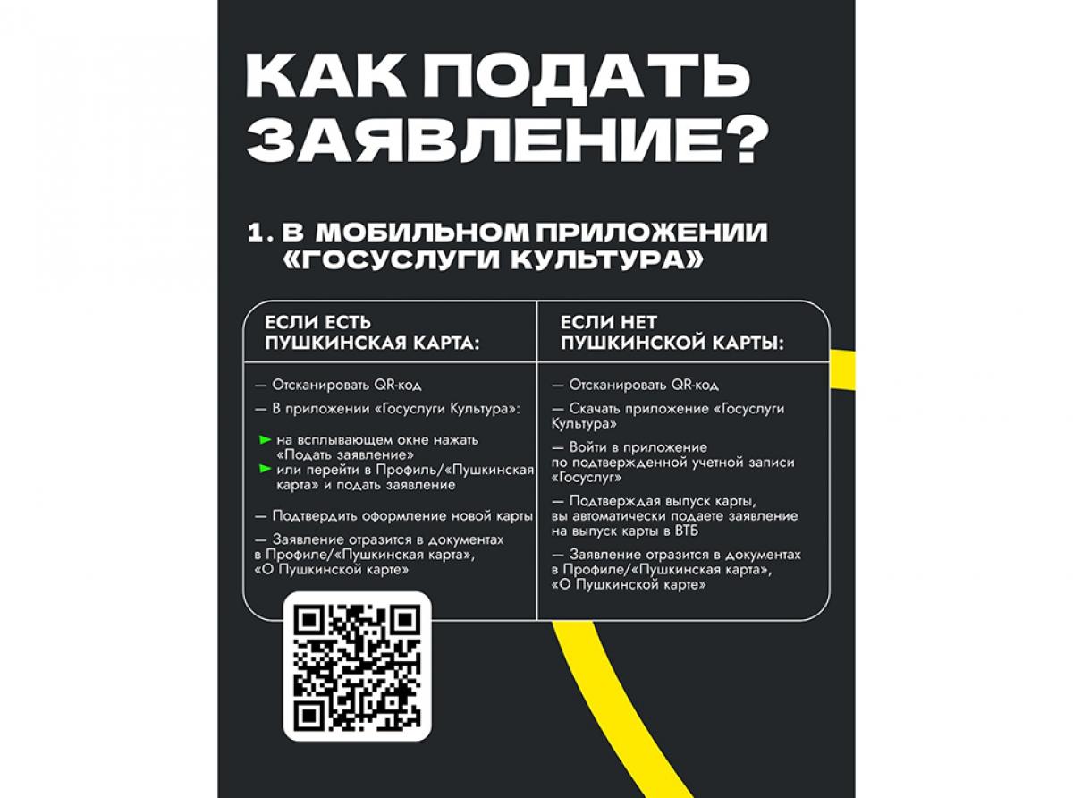 — заявление подаётся в приложениях «Госуслуги Культура», «Почта Банк», а также во флагманских клиентских центрах ВТБ и «Почта Банк»;