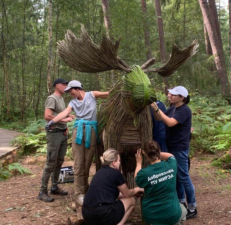 Ремонтом фигуры лося руководила её создательница Кристина Евстигнеева, которая завершает обновление ещё одного арт-объекта (косули) и в ближайшее время вернёт её на тропу.